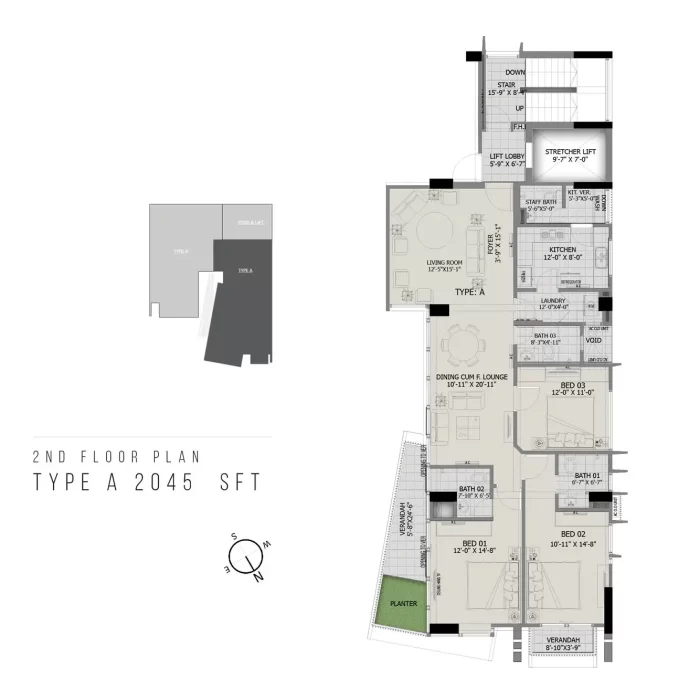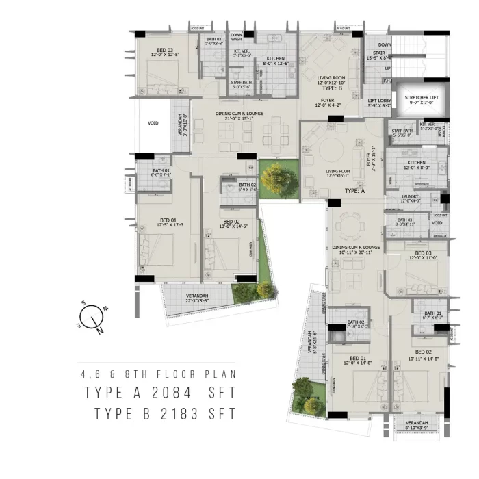 | Apartment Size | 2045-2124 sft |